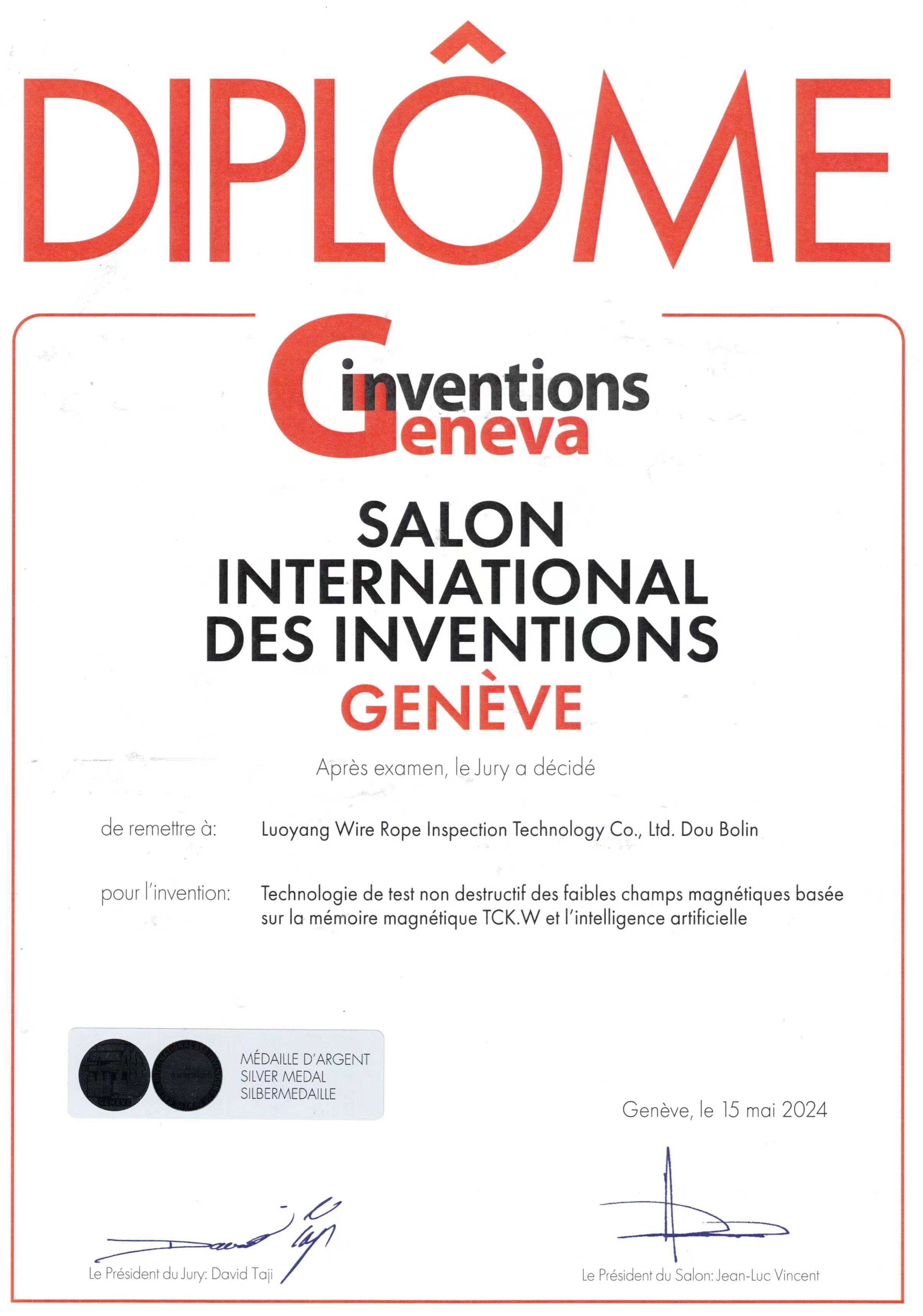 2024年TCK.Wの”磁気記憶式弱磁気AI検査技術”は第48回ジュネーブ国際発明展銀賞を受賞することがわかりました。